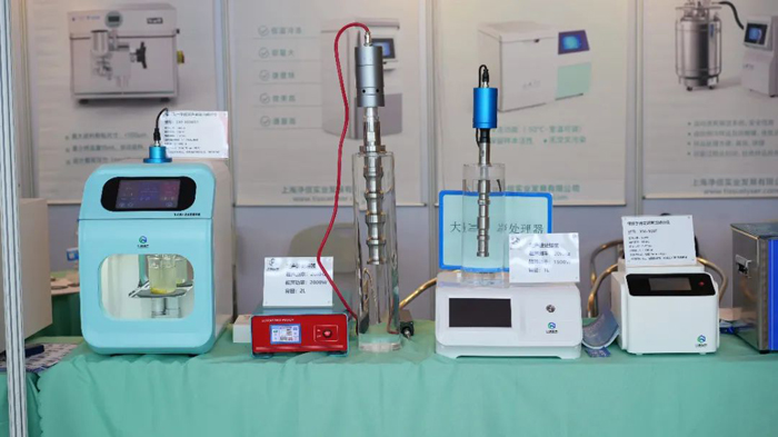 展會上,我司展示了多款產(chǎn)品:高壓均質(zhì)機、三維電磁篩分儀、行星式球磨儀、冷凍研磨儀、超聲波破碎儀、大功率超聲處理器、非接觸超聲波二維材料分散儀等多款產(chǎn)品。
