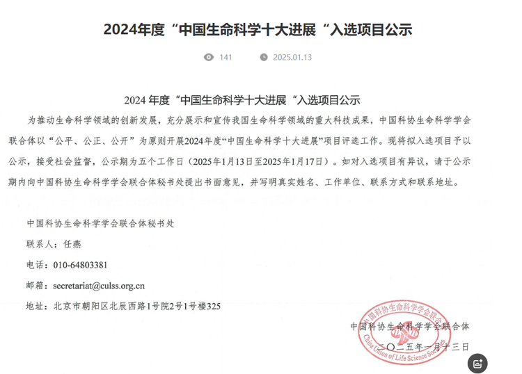 重磅|凈信多樣品組織研磨儀助力科學(xué)家獲得2024年度中國生命科學(xué)十大進展”