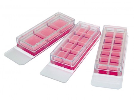 自粘性的12孔硅膠插件粘在一個標準的玻璃載玻片上